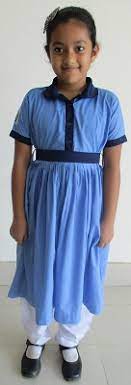 Frock : Blue Half Sleeve Frock with Navy Blue Collar & Button Plate
